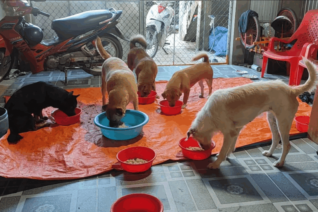 5 chú chó “trợ lý” giúp người đàn ông 60 tuổi bán vé số ở Đồng Tháp