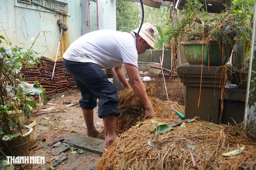 Trong khi đó, bên trong nhà của mẹ anh Vũ còn rất ngổn ngang, đồ đạc bị nước cuốn trôi. Mái ngói nhà phía sau bị sập. Giường, tủ, bàn, ghế vẫn dính đầy bùn đất. Anh chưa thể dọn dẹp được nhiều dù nước lũ đã rút. Bên ngoài, hàng trăm kg lúa giống chờ gieo sạ mùa vụ mới cũng nảy mầm, hư hỏng hoàn toàn.