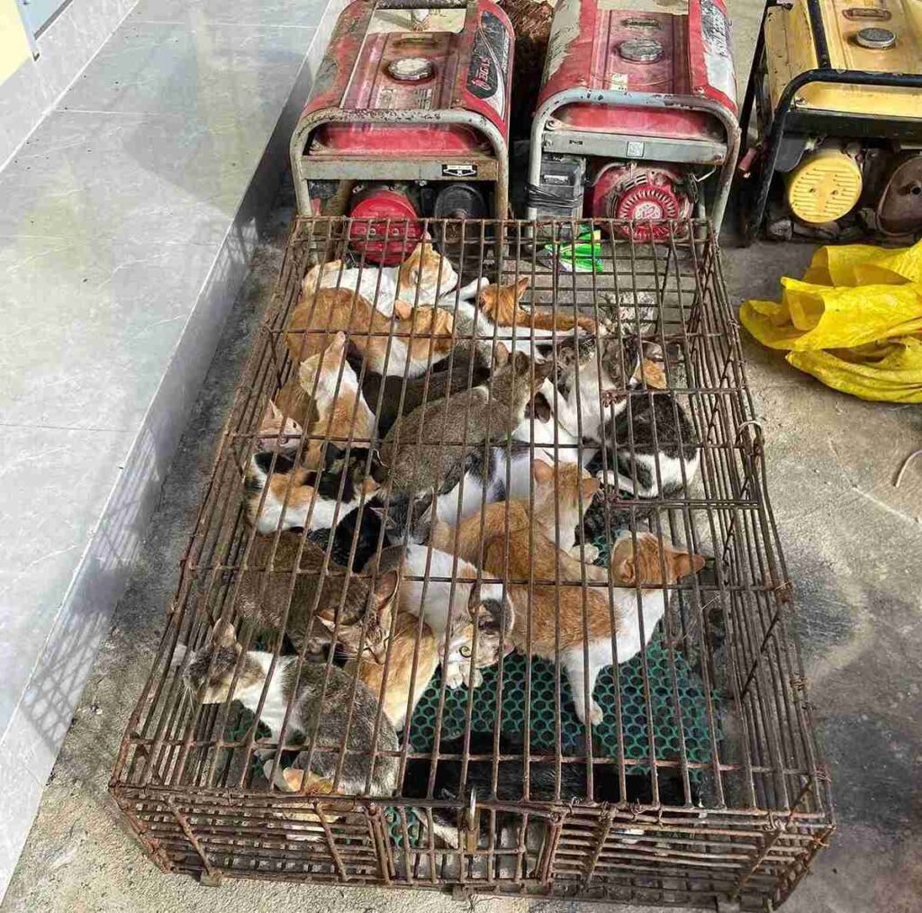 Khoảng 5 giờ cùng ngày, tổ công của Công an xã Phước Dinh tiến hành kiểm tra đột xuất một căn nhà thuê trên địa bàn, phát hiện 26 con mèo có tổng trọng lượng 48 kg, đang bị nhốt trong lồng sắt, bao tải.