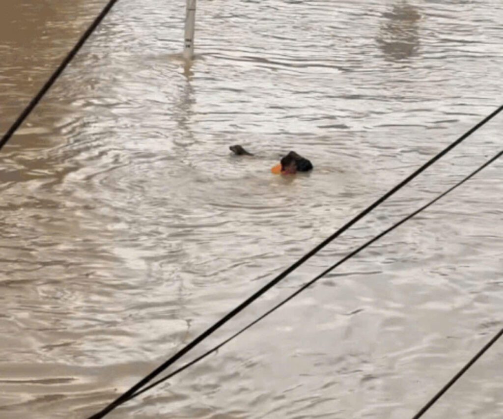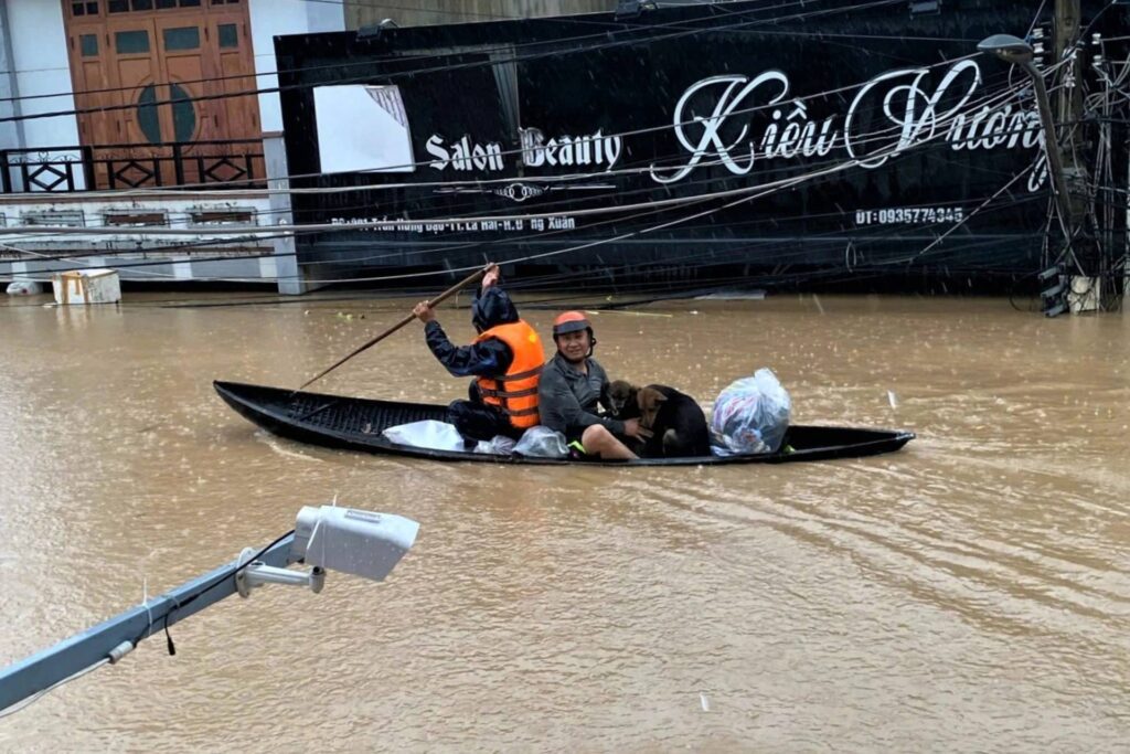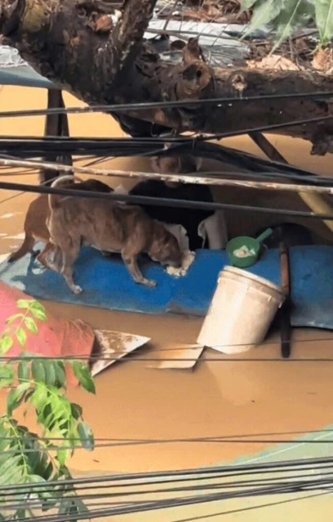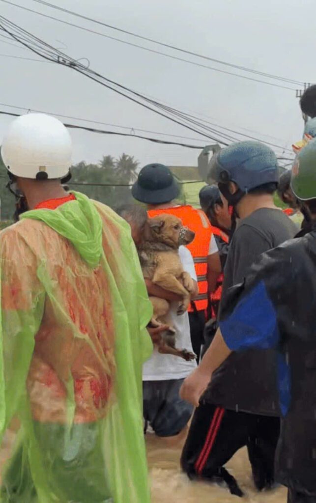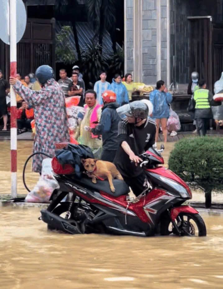 Trên các nền tảng MXH, nhiều hình ảnh/clip ghi lại màn giải cứu các bé chó ra khỏi vùng ngập lụt nhận về sự chú ý từ cư dân mạng. Có người đàn ông di chuyển khỏi vùng nước lũ nhưng 2 tay ôm 2 chú chó và để chú chó thứ 3 bơi sát cạnh mình. Có người dù nước lụt ngang hông nhưng vẫn lội đi cho 2 chú chó ăn cơm. Dù phải rời đi để bảo vệ tính mạng bản thân và đứng trước nguy cơ mất trắng tài sản, nhiều người cũng không quên thú cưng.