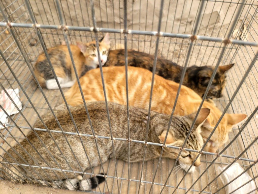Tại hiện trường, lực lượng chức năng thu giữ 18 con mèo cùng nhiều phương tiện, dụng cụ phục vụ việc bắt trộm và vận chuyển, trong đó có hàng chục bẫy mèo tự chế, túi lưới, chĩa kim loại, bình ắc quy và bình xịt hơi cay. Các đối tượng khai nhận mang theo bình xịt hơi cay để chống trả nếu bị phát hiện hoặc truy đuổi.